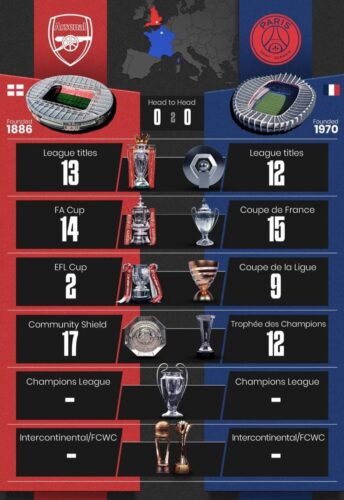 بطولات أرسنال وباريس سان جيرمان قبل مباراة اليوم