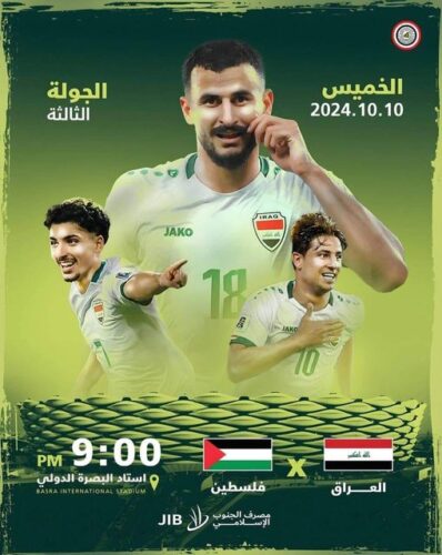 مباراة العراق وفلسطين بث مباشر في تصفيات كأس العالم 2026 عبر الرابط التالي هنـــــا.
