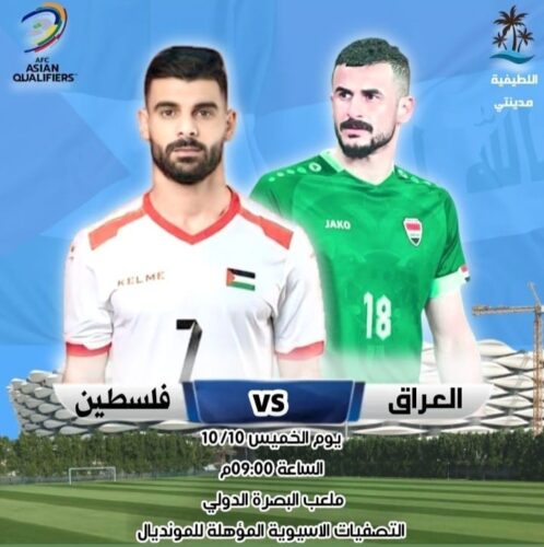 مباراة العراق وفلسطين بث مباشر في تصفيات كأس العالم 2026 والقنوات الناقلة