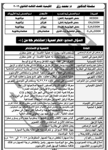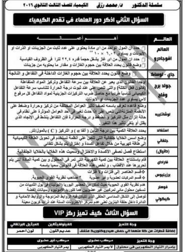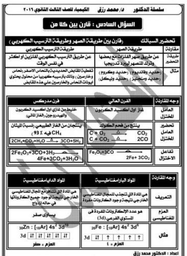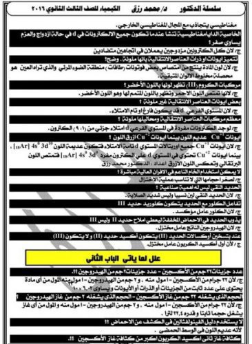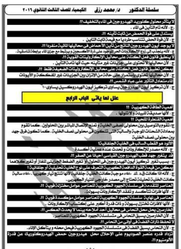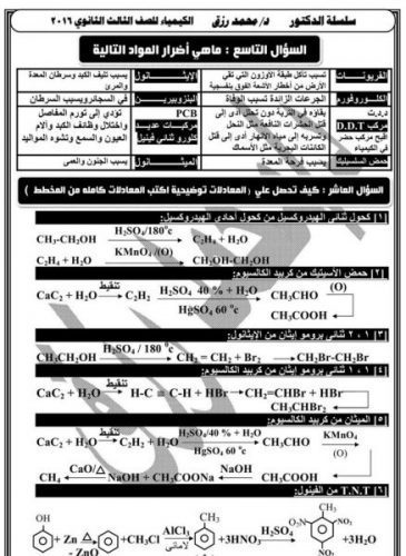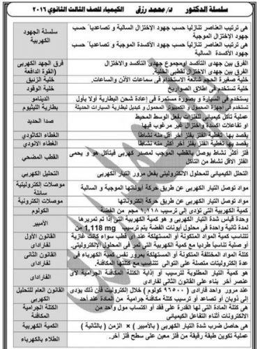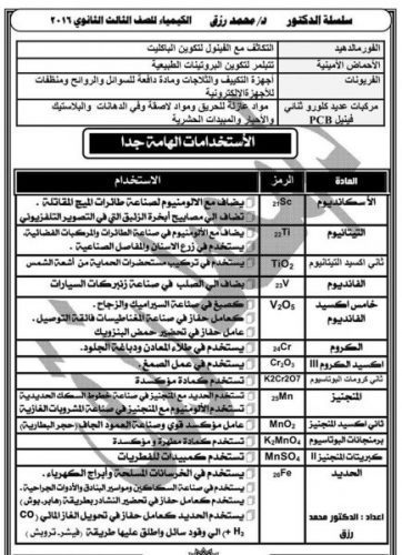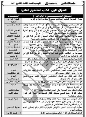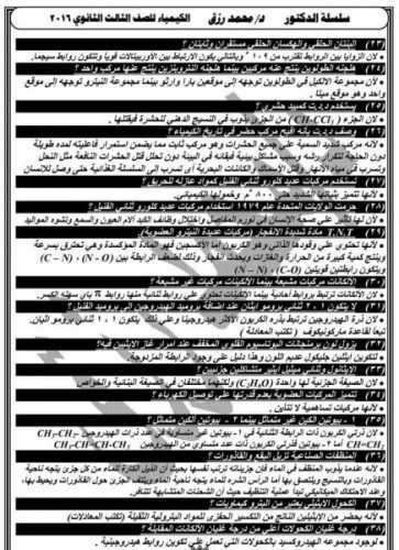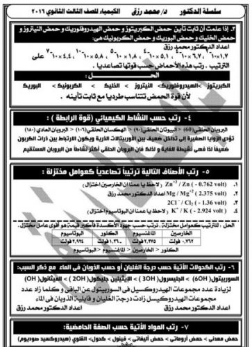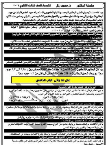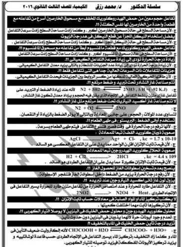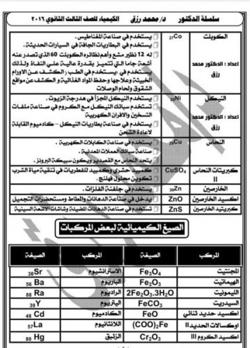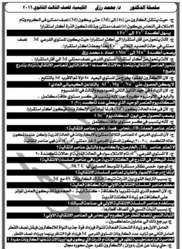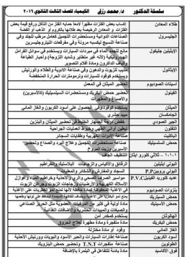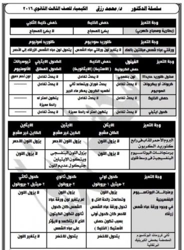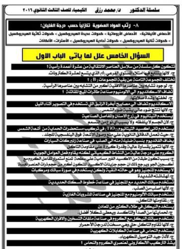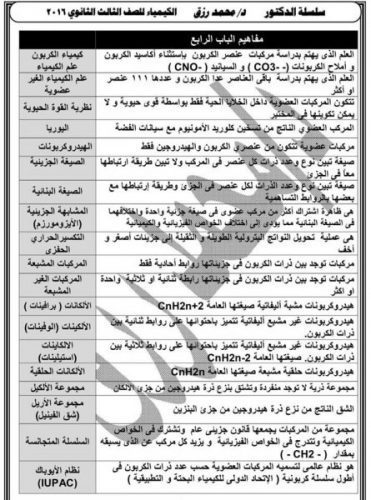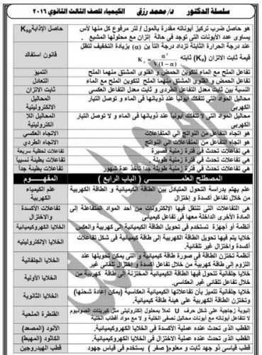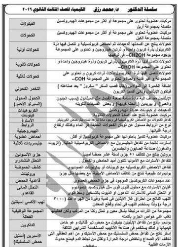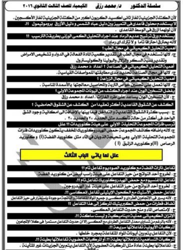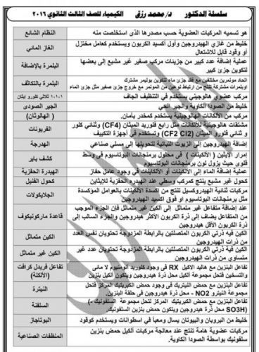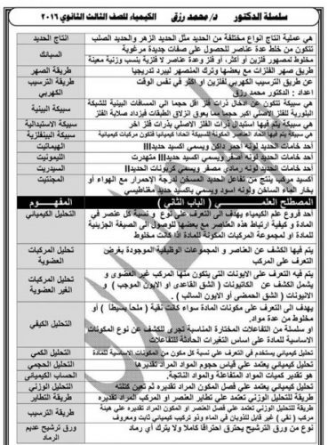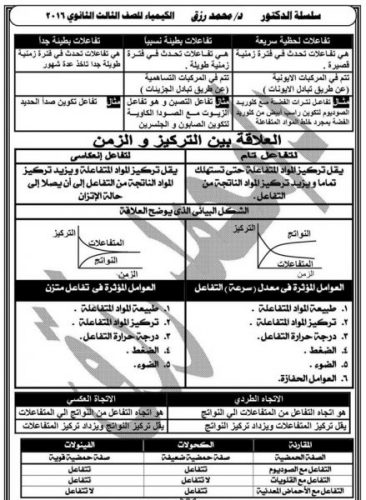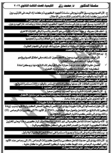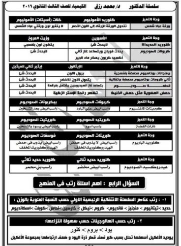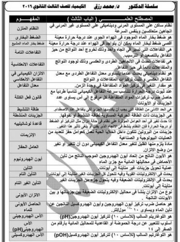ننشر المراجعة النهائية لمادة الكيماء للصف الثالث الثانوي للدكتور/ محمد رزق