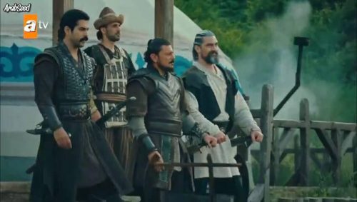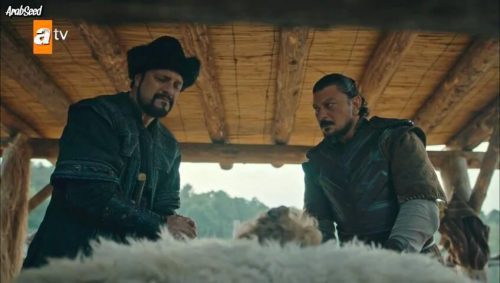 الصورة الأولى خروج عثمان وجوندوز وبامسي من خيمة السيادة وحدهما قبل أن يغادر بهادير القبيلة في ذالك الوقت كانوا يعدون خطة داخل الخيمة لفتح القلعة ومراقبة قبيلة تشوبان ما هي الخطة؟