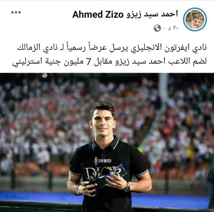 وكان “زيزو” قد تلقي عرضا من أحد الأندية الإنجليزية مقابل 7 مليون جنيه استرليني.